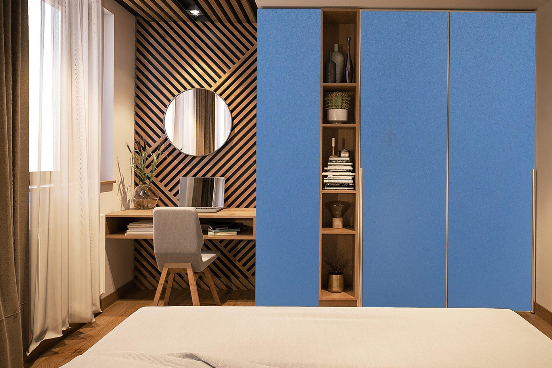| Description | Newmika Inky Blue is a laminate sheet with a suede finish in a rich blue color, measuring 8 ft x 4 ft and 1 mm thick. It offers a durable and low-maintenance surface, ideal for various applications such as living rooms, bedrooms, offices, and restaurants. This provides a luxurious touch with its smooth texture, enhancing the aesthetics of spaces like wardrobes, kitchen cabinets, and wall panels while ensuring long-lasting performance and easy upkeep. |